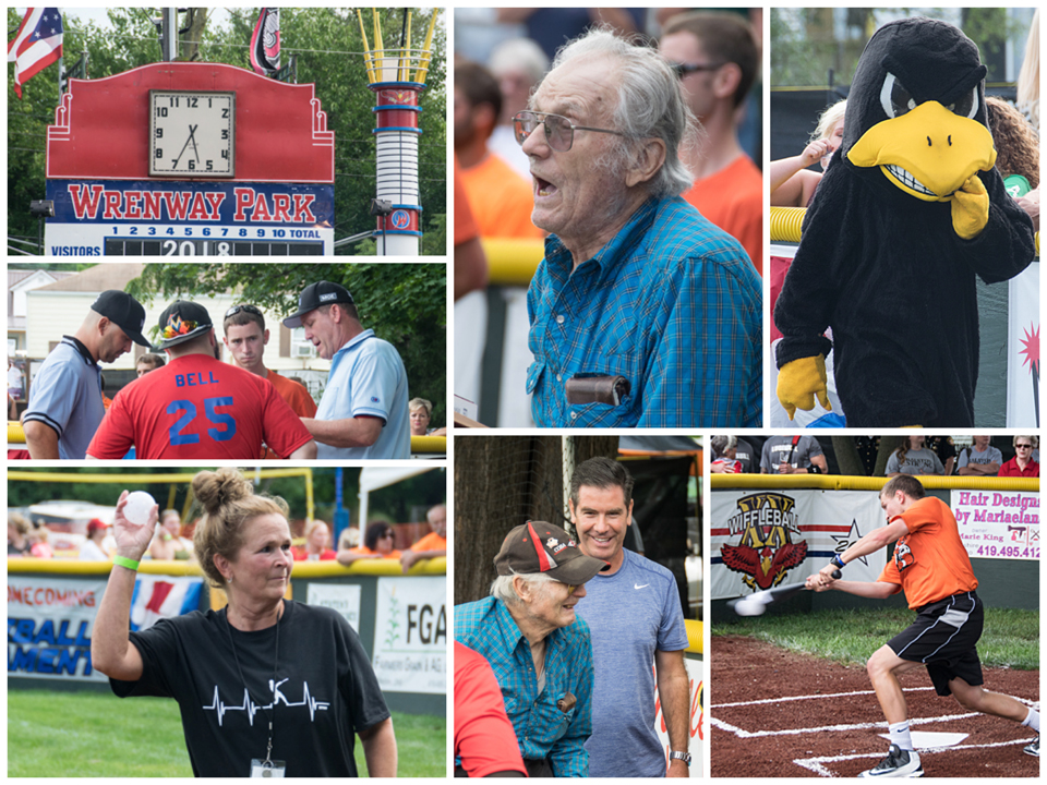 The 2018 edition of Wren Homecoming got underway Friday night when the annual Wiffleball Tournament got underway at Wrenway Park in downtown Wren. Wren Mayor Monica Davis (bottom left) threw out the first pitch this year, while World War II veteran Ivan Voltz (top center) sang “The Star-Spangled Banner”. The Birdville Bandit was on hand (top right) and even State Representative Craig Riedel (bottom center) got in on the fun. photos by Dave Mosier/Van Wert independent