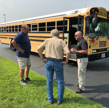 Bus drivers also watched videos of different scenarios that can occur on a bus route before taking to the buses themselves to practice. VWPD Officer Greg Blackmore and Deputy Sergeant Ed Klausing provided one-on-one training for each driver, acting as students or a potential threat, and walked them through various ways of handling situations that may occur on a bus.
