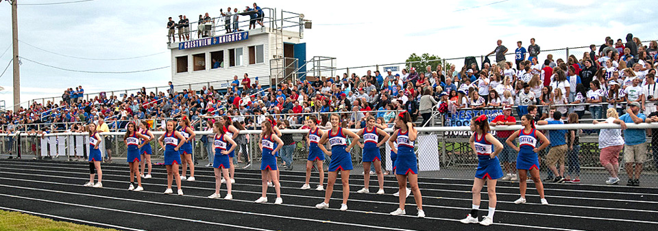 IT’S TIME FOR FOOTBALL! — Both Van Wert and Crestview’s football teams were in action at home on Friday to open the 2018 football season. Above, Crestview fans cheer on the Knights, who were 59-35 winners over the Parkway Panthers in their opener. The Cougars also won, 34-7, over the Bryan Golden Bears in the two teams’ traditional opener. Bob Barnes/Van Wert independent