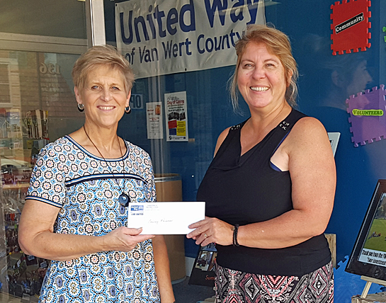 United Way of Van Wert County made a donation of $547 to the Convoy Preschool Lending Library. The money was given from the New Initiative Funds that provide one-time money for a new project or program. The Convoy Preschool Lending Library is new to the Convoy community and will be beneficial, as the local library hours have been cut and many parents cannot get to the library. They are hoping to fill that gap by supplying “loaner” books to the families to reinforce the importance of literacy. The mission of The Convoy Preschool is to protect, nurture individual growth and create a desire to learn. The center aims to develop the participants socially, emotionally, physically and cognitively for future schooling. Shown are Tonalee King (right), director of Convoy Preschool, with United Way Executive Director Vicki Smith.United Way photo