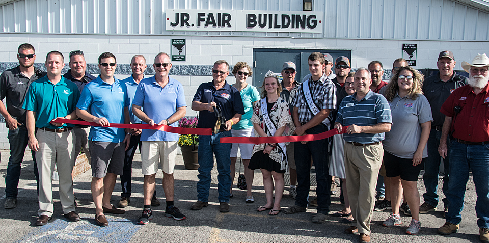 The first ribboncutting ceremony was in honor of recent renovation work on the Junior Fair Building. According to Fair Director Mike Poling, Fair Board members and community volunteers provided approximately 95 percent of the labor involved in the renovation, which included a new HVAC system for the building, which was not air-conditioned previously, as well as rewiring the building and installation of LED lighting, removal of the old ceiling and restrooms at the south end of the building.