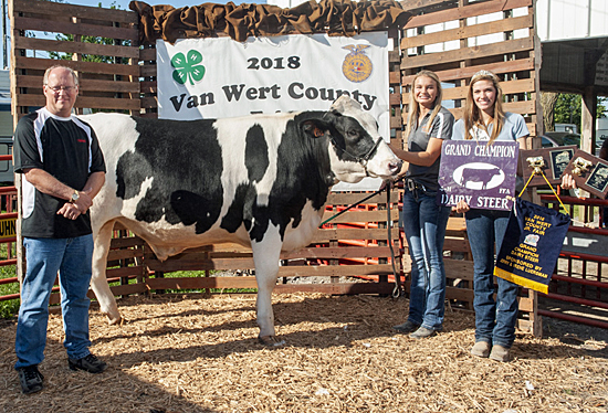 Dairy feeders — A total of 32 dairy feeders was sold this year for a total of $24,572.50, or an average per-animal premium of $767.89. The value of the meat was $13,361.81, or a per-animal average of $417.56, for a total sale price of $37,934.31, and a per-animal average price of $1,185.45. In 2017, 28 animals were sold for a total of $18,546, or per-animal average of $662.36. The actual value of the meat was $12,000.15 for a total sale price of $30,546.15, and a per-animal average of $1,090.93.