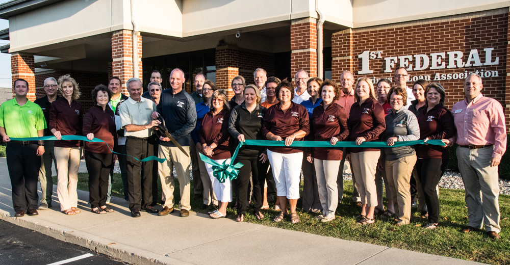 First Federal of Van Wert held a ribboncutting ceremony through the Van Wert Area Chamber of Commerce to celebrate its 125-year history in Van Wert. Shown cutting the ribbon is First Federal President Brian Renner, while First Federal staff and board members and Chamber board members and staff look on (click on the photo for a larger version). Dave Mosier/Van Wert independent