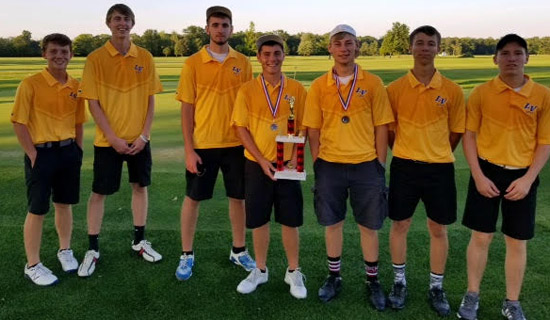 Lincolnview’s golf team finished third at last week’s Northwest Conference boys’ golf tournament and second with Paulding in the final regular season standings. Pictured above (left to right) are team members Landon Price, Zane Miller, Reece Farmer, Ryan Moody, Jaden Youtsey, Braden Evans and Avery Slusher. Photo courtesy of Lincolnview Local Schools