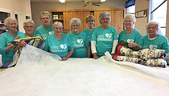 The Piecemakers of St. Mark’s Lutheran Church in Van Wert are members of a Thrivent Action Team. Thrivent helped the women purchase batting to make 50 quilts for Lutheran World Relief. Shown (from the left) are Barbara Reichert, Carol Greulach, Joan Holland, Yvonne Leaser, Myra Friesner, Karen Ottenweller, Susan McKanna, Carol Doner, and Lois Linser.