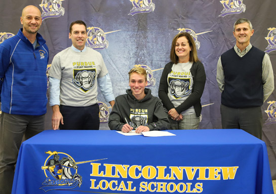 Lincolnview High School senior Karter Tow has signed a letter of intent to run cross country and track at NCAA Division I Purdue-Fort Wayne next season. Tow is a four year varsity winner at Lincolnview and qualified for the state cross country meet for four consecutive years with a team and was a two time individual State qualifier. He was First Team All-NWC, and was a NWC individual and team champion, as well as a former NWC male cross country athlete of the year. Tow has also qualified for the State indoor track meet and the State outdoor track meet in the 3200 meter run. He’ll be competing this winter in indoor track and next spring Tow will finish his high school career running outdoor track for the Lancers. His parents are Brent and Kris Tow. Photo by Wyatt Richardson/Van Wert independent