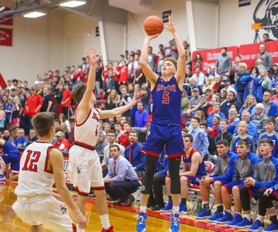 Javin Etzler pulls up for three of his 11 points, but Crestview fell to Bluffton 43-41 on Friday. In a physical game, two teams were tied 17-17 at halftime, and the Knights trailed 37-26 early in the fourth quarter before seeing a late rally come up just short. In addition to Etzler’s 11, Wade Sheets scored 10 for the Knights, while Luke Denecker led Bluffton (4-0, 1-0 NWC) with 19. Crestview (2-1, 0-1 NWC) will host Edgerton tonight and Fort Jennings on Tuesday. Wyatt Richardson/Van Wert independent