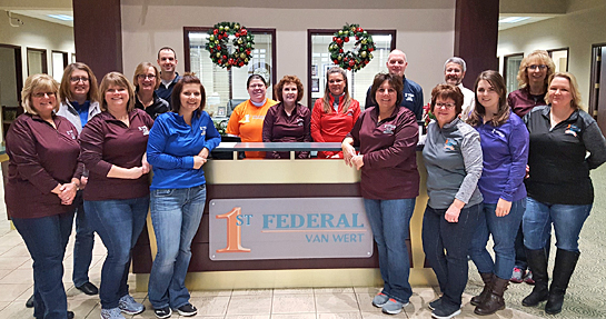 The staff of First Federal of Van Wert prides itself in serving Van Wert County, and, as usual, has completed its 2018 United Way campaign with 100-percent participation. Not only do the employees give, but First Federal also makes a corporate donation to help lead the campaign. The financial institution has been a key example for many new industry and business campaigns. First Federal has also been a great partner in the annual Day of Caring bank challenge. It has won the challenge for the past three years and has collected thousands of items for the local food pantries. The bank is also a corporate table sponsor at the Fiesta Fun Friday event and allows bank employees to volunteer for United Way roles. United Way photo