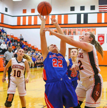 The Lady Knights led 35-30 entering the final period, but Kayleigh Klir hit two triples and Kristen Luersman scored five points to lead the fourth quarter comeback. Luersman finished with a game high 19 points, while Klir scored 12 points, all on three pointers in the second half.