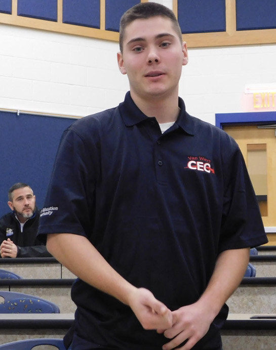 Board members heard from three high school seniors involved with the CEO program, which is a form of comprehensive on the job training, and all three shared their experiences. Thad Walker is at Van Wert Family Physicians, Rachel Hertel is working in the Van Wert City Schools’ ECC building and Ryan Moody is partnered with the Van Wert Fire Department, and he said every day is different.