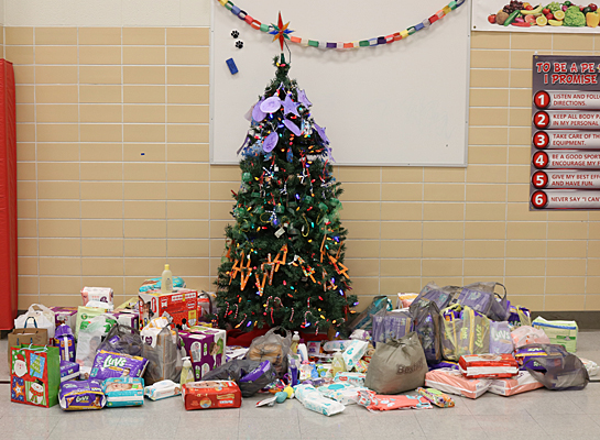 Christmas came early for some Van Wert County organizations, thanks to the generosity of Van Wert City Schools staff and parents. Staff members in the high school, middle school, and elementary school were encouraged to participate in “Jeans for JA”, where staff members could wear jeans the week prior to Christmas break in turn for cash donations. A total of $1,065 was collected and will be donated to support the county-wide Junior Achievement program. This year, Van Wert Early Childhood Center chose the Pregnancy Life Center Health Clinic as its community outreach organization. Staff members who donated diapers were rewarded with jeans days for the month of December. Parents and students were also encouraged to participate by donating a variety of baby items, including diapers, wipes, toys, clothes, blankets, baby lotions and soaps, pacifiers, and bottles.VWCS photo