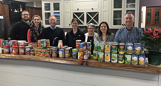 The employees of Alexander & Bebout Inc. and Kitchens Inc. held their 11th annual food drive in conjunction with A & B’s Christmas Party. Employees collected 120 food items during the drive, while games played at the Christmas Party netted a $175 cash contribution, which, along with a company match, allowed for a $350 donation to United Methodist Cooperative Ministries Food Bank in addition to the food donation. Shown are (from the left) Travis Ferrell, Shae Friemoth, Charlie Salway, Kristen Lange, Teresa Parrish, Sara Zura, and Jeff McClure.