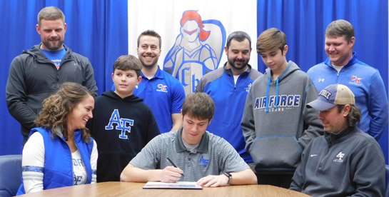 Surrounded by family, friends and coaches on National Letter of Intent Day, Sheets signed documents to continue his academic and athletic career at Air Force. The NCAA Division I Falcons play in the Mountain West Conference.