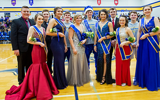2019 Lincolnview Homecoming Queen Lakin Brant (center, with blonde hair) and King Alek Bowersock (with crown) are shown with their court during Homecoming ceremonies held at the school on Friday evening.Bob Barnes/Van Wert independent
