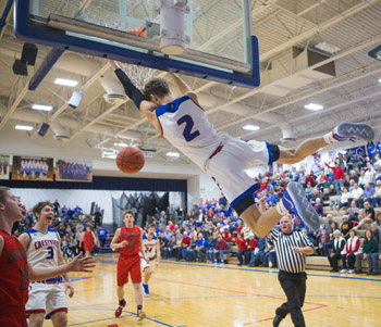 Crestview (20-1, 6-1 NWC) used two large scoring runs – 9-3 and 12-2 – to pull away in the second quarter. Javin Etzler, who finished with 15 points and nine rebounds, scored nine points in the period and Lautzenheiser’s late triple put the Knights up 42-17 at halftime. Lautzenheiser finished with eight points.