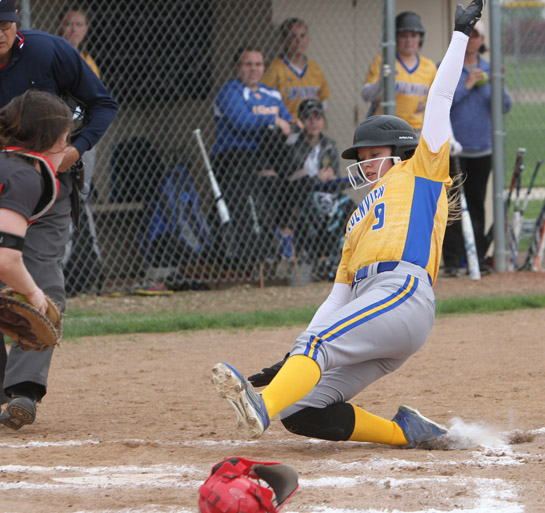 Winter Boroff slides into home during Thursday’s Division IV sectional championship game against Columbus Grove. The Lady Lancers scored five runs in the first inning, five more in the second, six in the fifth and one more in the sixth to win the sectional title 17-9. Boroff had three RBIs and scored three runs, and she pitched 4.1 innings and allowed just one hit while striking out two. Carly Wendel, Andi Webb and Annie Mendenhall each had three RBIs for Lincolnview. The Lady Lancers will play Parkway in the district semifinals at 4 p.m. Tuesday at Elida. Photo courtesy of Kylee Mongold