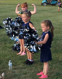 Children ages 5-7 will be playing/cheering on Tuesday nights while children ages 8-10 will be playing/cheering on Thursday nights. Depending on the number of cheerleaders signed up, all cheerleaders may cheer on one night.