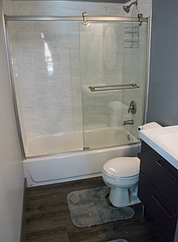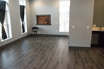 The first floor now features a 1,054-square-foot commercial space that is ready to be finished off by someone seeking a downtown business location. Rammel said with business people today mostly wanting to add their own distinctive look to a property, he and Adams felt it was better to leave the business space unfinished and let a tenant add their own paint and flooring in the space.