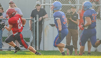 The Knights were forced to punt on their next possession and Jackson took just one play to race 71 yards to the end zone, then on Crestview’s ensuing possession, a pair of runs by Caylib Pruett put the Knights on the 48 yard line, but Sam Cassidy picked off a Short pass and returned it for a touchdown, giving Van Wert a 26-0 lead.