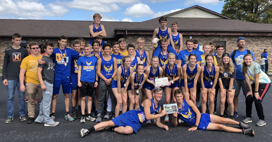 Lincolnview’s cross country teams won the Red Division (small schools) races at 22nd annual Marion/IWU Cross Country in Marion, Indiana on Saturday. The boys were able to bring home 10 individual medals and the girls were able to place five in the top 24. The top finisher for the boys was Devon Bill who was third place overall. He was followed by Joe Sadowski (fifth), Daegan Hatfield (12th), Brandon Renner (14th), and Jackson Robinson (15th). Also in the top 25 were Brad Korte and Keagan Farris. Madison Langdon led the girls with a runner-up finish and was followed by Julia Stetler (eighth), Victoria Snyder (14th), Dylann Carey (20th), and Kenna Mason (24th). Photo submitted