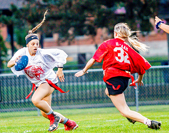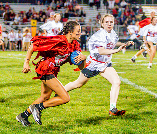An enthusiastic crowd was on hand (above) for Van Wert High School’s annual Powder Puff game between the senior and junior girls (below). The game is part of football Homecoming activities that culminate in the game on Friday and a dance on Saturday. photos by Wyatt Richardson/Van Wert independent
