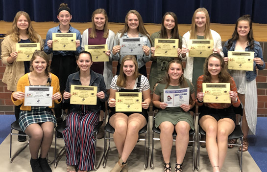 The Crestview soccer program held its postseason awards banquet to recognize athletes for their hard work throughout the season. Coach John Dowler and his staff presented Northwest Conference Scholar-Athlete and special awards during the event. NWC Scholar-Athlete Awards (l to r) Row 1: Chloee Case, Madalyn Ward, Salex Overmyer, Jade Sheaffer, Lindsey Schumm. Row 2: Luisa Hoppe, Katelyn Castle, Hope Loyer, Micaela, Lugabihl, Macy Kulwicki, Addyson Dowler and Haley Owsley. Special Awards (l to r) Row 1: Hannah Dickson (Most Improved), Chloee Case (NWC Honorable Mention, Team Captain, Defensive Leader), Salex Overmyer (Team Captain), Jade Sheaffer (Hustle Award), and Madalyn Ward (2nd Team NWC, Team Captain, MVP). Row 2: Luisa Hoppe (Coaches Award), Katelyn Castle (1st Team NWC, Offensive Leader), Hope Loyer (NWC Honorable Mention, Coaches Award), Micaela Lugabihl (Hustle Award), Macy Kulwicki (2nd Team NWC, Coaches Award) and Addyson Dowler (NWC Honorable Mention). Crestview photos