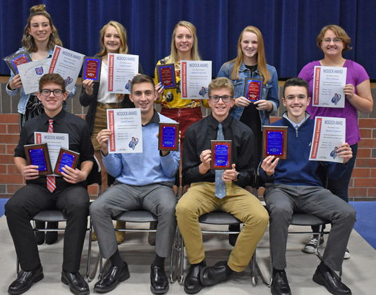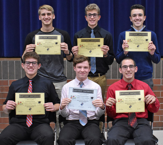 The Crestview cross country program concluded its season after Ragen Harting’s State appearance. Head coach Jeff Bagley and assistant coach Randy Grandstaff recognized their teams’ accomplishments throughout the season at their recent awards presentation. Girls Scholar-Athlete Awards Row 1 (top, left to right): Lauren Walls, Megan Mosier, Lydia Saylor, Ragen Harting. Row 2: Emily Greulach, Baylee Miller, Adalynn Longstreth. Boys Scholar-Athlete Awards Row 1 (middle, left to right): Cameron Cearns, Danil Lichtensteiger, Wyatt Richardson. Row 2: Brian Myers, Isaiah Watts, Hayden Tomlinson. Special Awards Row 1 (bottom, left to right): Cameron Cearns (Modock Award, MVP, Golden Guts), Jacob Forwerck (Modock Award, Most Improved), Isaiah Watts (Most Improved), Hayden Tomlinson (Modock Award, MVP). Row 2: Ragen Harting (Modock Award, MVP, Academic All Ohio), Emily Greulach (Modock Award, Golden Guts), Adalynn Longstreth (Modock Award, Most Improved), Megan Mosier (Most Improved), Kiara Anderson (Modock Award). Crestview photos