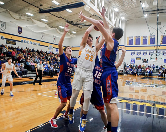 The Raiders held a 22-19 lead to start the second half, but quickly blew the game open with an 11-0 run to extend the lead to 33-19. After Lincolnview’s Aaron Cavinder knocked down a trey, Wayne Trace answered with another 11-0 run, pushing the advantage to 44-22. During the two runs, Nate Gerber scored eight of his game high 23 points, while Jace Vining added six of his 17 points and Cameron Sinn five of his seven points during the run.