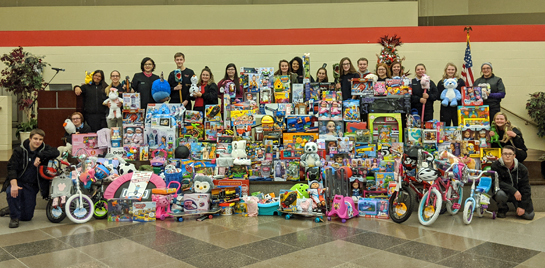 Christmastime will be much merrier for local children of families in need because Vantage Career Center’s Interact students held several fundraisers and raised over $3,600 for the annual Toss-A-Toy event. Fundraisers included a $1 jeans day, $1 ugly Christmas sweater contest, classroom Christmas carolers, with an option for Grinch Insurance, and a change stall. With the collected funds, students and advisors organized a field trip to the local Walmart where they purchased three truckloads of toys for local families and children in need. Vantage staff and students thank Wal-Mart and Lee Kinstle GM Sales & Service, which provided transportation of the toys to the Salvation Army. The Vantage Interact club is a student-led club that encourages leadership and responsibility, promotes student collaboration among various labs and home-schools, and supports student civic involvement to benefit area communities. Here, club members pose with the purchased toys. Vantage photo