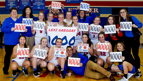 Gregory, who needed nine points to reach 1,000, hit the milestone when she drained a trey from the top of the key with 7:17 left in the second quarter. Seconds later, the game was paused for a brief celebration.