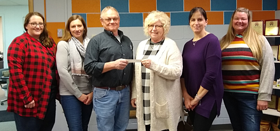The Van Wert Peony Festival Committee recently made a donation to the Van Wert County Agricultural Society to help with new landscaping at the Fairgrounds that will begin this spring. Shown (from the left) are Ohio State University Extension Educator Heather Gottke, Extension Co-op representative Rachel Hoverman, Fair Secretary Mike Poling, Peony Festival Committee President Vickie Schulte, Peony Festival Committee Vice President Ellen Morrow, and Peony Committee Board member Brandy Leiber. photo provided