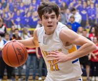 Jessee scored eight points in the fourth quarter, including Lincolnview’s only trey of the game to pull the Lancers to within three, 63-60, with 4:40 left. However, Vermillion, who finished with 23 points, immediately answered with a triple of his own and the Red Devils scored 10 unanswered points to lead 73-63 with 1:10 left.