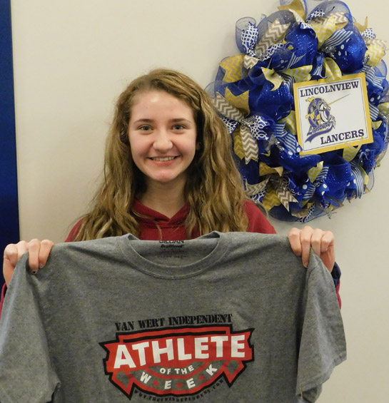 Lincolnview junior basketball player Annie Mendenhall is this week’s Van Wert independent/Northwest Ohio Welch Trophy Student Athlete of the Week. Mendenhall, who was nominated by head coach Kyle Williams, is one of the team’s leading three point shooters and rebounders and holds a 3.84 grade point average in the classroom. She also plays softball for the Lady Lancers. Scott Truxell/Van Wert independent