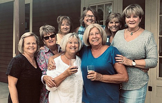 The following eight women have been best friends since junior high school, and several of them since kindergarten. They have developed a bond that is unbreakable, and, through the years, have met for dinner once a month, which they refer to as their “board meetings”. Each month they pay their dues, which are recorded by their secretary, who also manages a bank account for their trip expenses. The money collected goes into a kitty to pay for upcoming adventures. Thus far, they have been to Chicago, New York City, The Outer Banks, and wine country in California, to name a few locations.