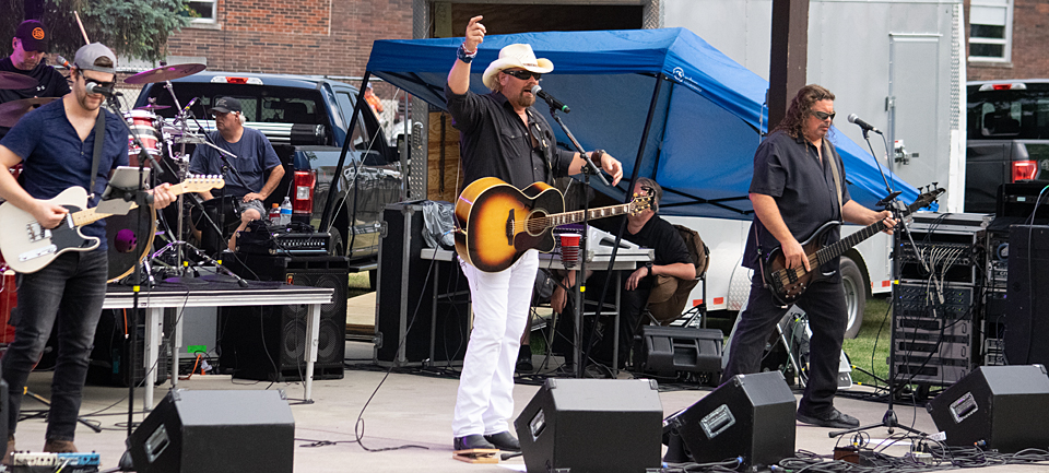 Mike Sugg and his “American Ride: A Tribute to Toby Keith” show had people humming and tapping their toes during the concert in Fountain Park on July 4. The concert was the first in Fountain Park this summer. Dave Mosier/Van Wert independent