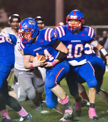 After sputtering on several possessions, the Knights scored with just 37 seconds left in the half on a 6-yard run by Jake Lippi. Jake Tatum kicked the point-after to cut Spencerville’s lead to a TD, 14-7.