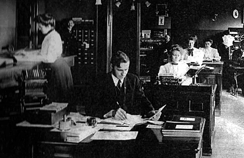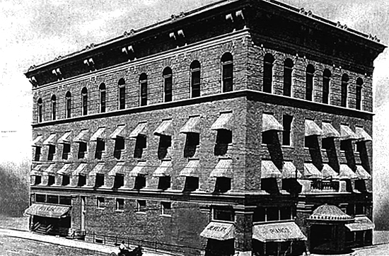The four-story building included a music store, the Home Guard Grocery, and several clothing shops in the basement area and first floor, as well as Saltzgaber’s law offices and law library, and two physicians’ offices. The business offices of the Home Guards of America were on the second floor.