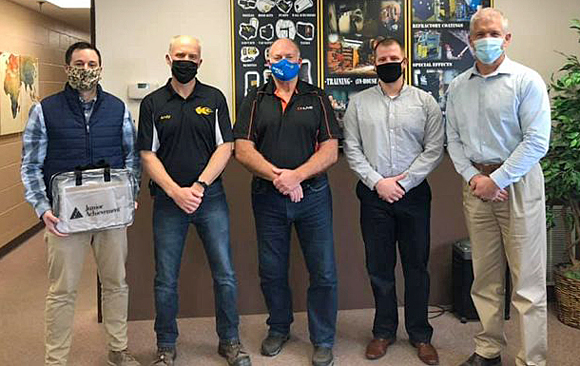 Junior Achievement of Van Wert County recently recognized Cool Machines and business partners Dave Krendl and Andy Schulte for their commitment to being a Partner Level sponsor, which provides funding support for an entire programming series. Local JA programming is performed by all volunteers and reaches over 1,500 students each school year, focusing on financial literacy, entrepreneurship, and work readiness. “We enjoy supporting programs that help inspire our youth to understand and explore what they want to do with their future. We had a dream once to become business owners and this is our chance to support our youth as they determine their career path,” Krendl said. Shown are (from the left) Cory Michaud (JA Board president), Schulte (Cool Machines), Krendl (Cool Machines), Thaison Leaser (JA Board treasurer) and Pat Jackson (JA Board member). JA photo