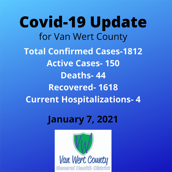 The health department continues to administer COVID-19 vaccine to those people in Phase 1A. More information should be available in the next week on when the next phase of vaccination will begin. The health department is receiving a large volume of calls inquiring about vaccine. The health department can place those over age 65 on a call list for when the next phase of vaccinations (Phase 1B) begins to schedule vaccinations. Call 419.238.0808 and, when the recording begins, dial extension 111 and follow the instructions. Those in this age group may also contact the Van Wert County Council on Aging for information regarding vaccinations.