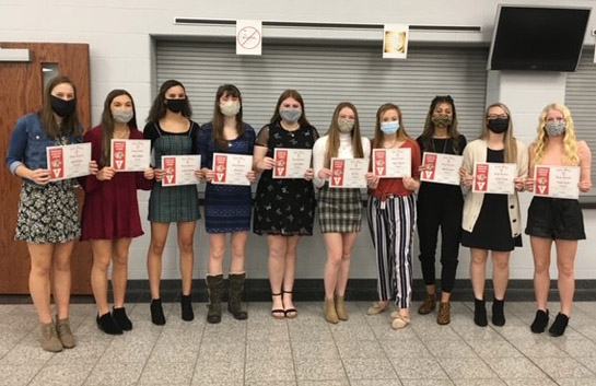 The Van Wert varsity volleyball team recently gathered to celebrate the fall season and various team accomplishments. Team awards and varsity letters were honored and scholar athletes were also named and presented with certificates. Special awards (above, left to right): Kayla Krites , nost blocks; Mariana Ickes, most aces; Carlee Young, most digs; Jaylyn Rickard, most kills and best serve receive percentage, and Finley Foster-massists and best serving percentage. Varsity Scholar Athletes (pictured below): Kayla Krites, Maria Bagley, Jordanne Blythe, Riley Dunn, Carly Rollins, Isabella Carr, Jaylyn Rickard, Mariana Ickes, Carlee Young and Finley Foster The team was coached by Jeff Marbaugh. Photos submitted