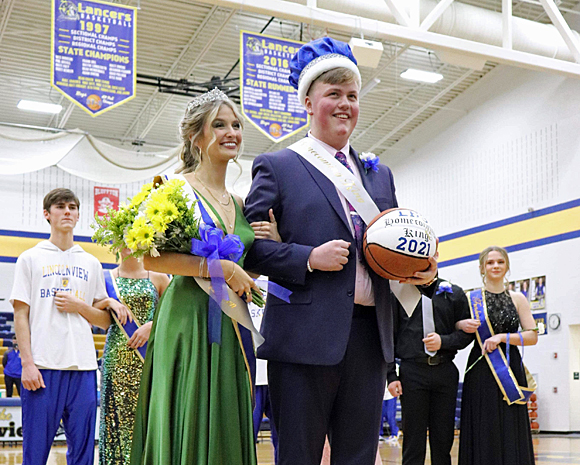 Lincolnview High School’s 2021 homecoming Queen Dylann Carey and Homecoming King Carson Bowen were crowned between the junior varsity and varsity boys’ basketball games on Saturday in the Lancer gymnasium. photo by Hanna Young for the Van Wert independent