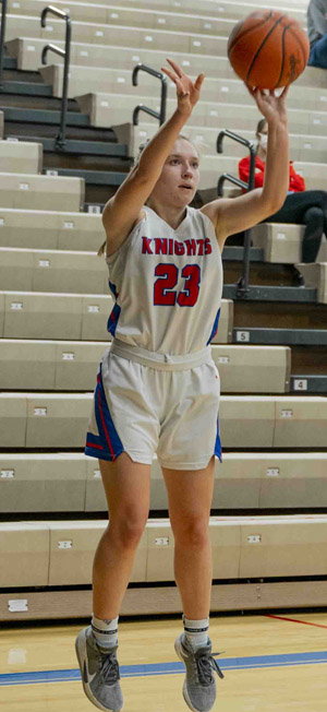 Christina Graham opened the third quarter with a quick trey and a basket that made it 28-26, prompting a Crestview timeout. After that, a bucket by McCoy was sandwiched by two Cali Gregory foul shots and the Lady Knights went on to lead 38-32 at the end of the period. Graham finished with a team high nine points, while Rachel Stoller had eight points and eight rebounds and Katrina Stoller finished with eight points and six rebounds.
