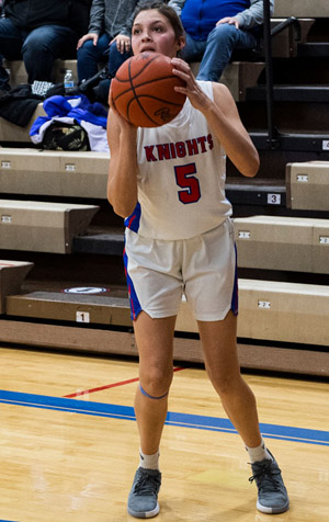 Despite missing three starters due to injuries, the Lady Knights controlled the boards on the offensive end in the first half and turned several missed shots into points, including the first seven points of the game. Crestview (18-3) led 14-7 at the end of the first quarter, with Cali Gregory scoring six points and Laci McCoy adding four.