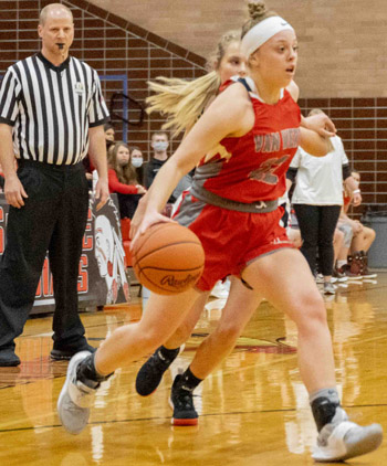 After a pair of free throws by Sofi Houg early in the second quarter, Shawnee scored 14 unanswered points to take a 32-10 lead and Freiberger hit a deep triple from the left wing at the buzzer to put the Indians ahead 35-12 at halftime. Van Wert’s only other points of the period came on two Jaylyn Rickard foul shots.