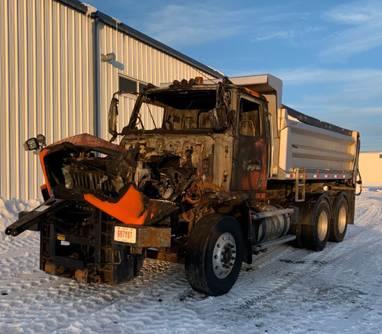 This dump truck caught fire in the Van Wert County Engineer’s maintenance facility Sunday morning. The Van Wert Fire Department was dispatched to the Grill Road scene at approximately 7:20 a.m. and according to Captain Dave Cummings, the truck was parked inside the building when the fire broke out. The blaze was quickly contained although smoke was visible around the area. No injuries were reported. Bob Barnes/Van Wert independent