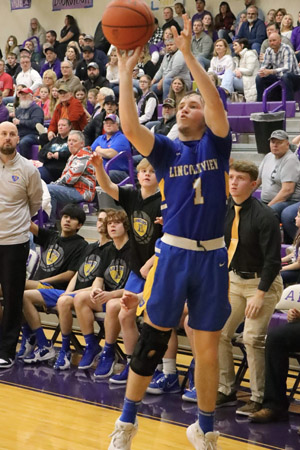 Garrett Richardson scored seven points in the opening quarter but Ada’s Grant Preston scored eight points of his 11 points, including a pair of triples and the Bulldogs carried a 14-13 lead into the second quarter. The Lancers connected on just four baskets in the second period but three were treys, which allowed Lincolnview to take a 24-22 lead into halftime. Ada countered with six points by Cayden Murphy, who went on to finish with 13.