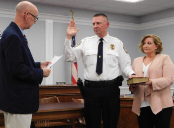 With family, friends, city officials and emloyees and other law enforcement officers looking on, Doug Weigle was officially sworn in by Mayor Ken Markward during a short ceremony held Tuesday afternoon at the Municipal Building. He’s replacing former Chief Joel Hammond, who retired last Friday.