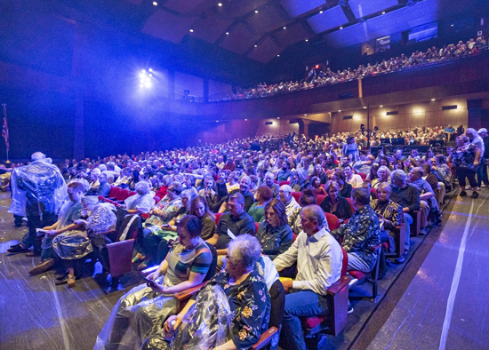 It was a packed house at the Niswonger Performing Arts Center Sunday night, as fans flocked to see the world famous Blue Man Group. Note the plastic on the floor and ponchos on people in the front row – that’s due to splattered materials that sometimes come from the Blue Man Group during the unique, high-energy show. It’s a short turnaround week at the NPAC, as Herman’s Hermits starring Peter Noone will take the stage Friday night. Photo courtesy of Darin Hohman