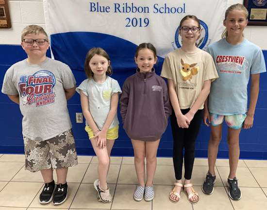 Crestview Elementary recently named its Students of the Month, sponsored by Van Wert Cinemas. Students making the Knight leader board each month will be put into a drawing for a free 30 day pass to the movie theater for their entire family.Van Wert Cinemas April/May Students of the Month are (left to right) Jordyn Jewell, Daila Buckner, Emma Gibson, Mara Myers, and Emily Heth. Photo submitted