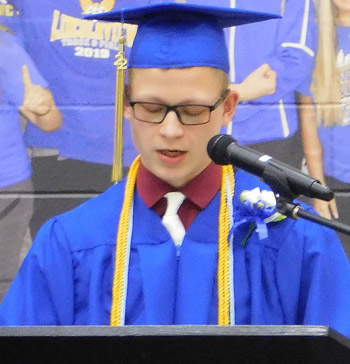 Class valedictorian Owen Harris addresses the Lilncolnview High School Class of 2022. Scott Truxell/Van Wert independent